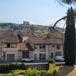 Orientée plein sud, elle bénéficie d’une belle luminosité et d’une vue sur le château médiéval — un espace paisible pour profiter de Vaison-la-Romaine dès le matin.